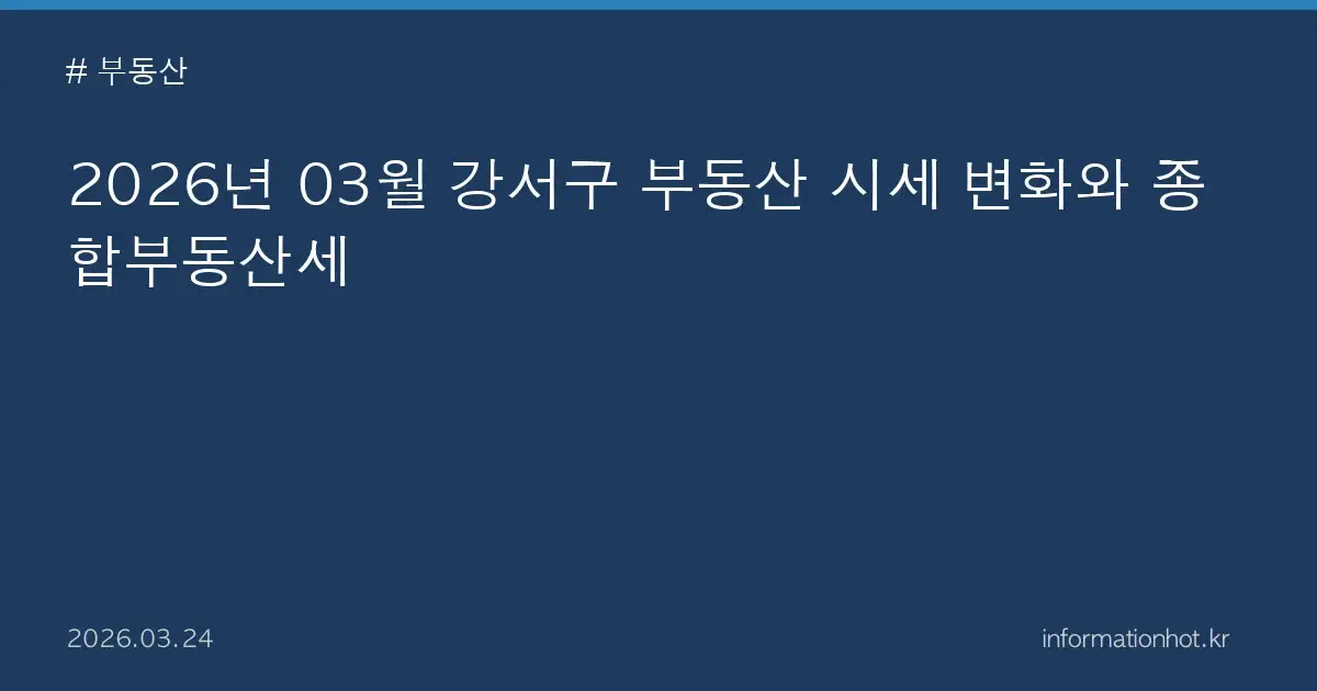 2026년 03월 강서구의 부동산 시장은 안정적인 거래를 이어가고 있으며, 평균 시세는 77,686만원으로 집계되었습니다. 특히 강서힐스테이트의 최고가가 두드러지며, 종합부동산세와 거래량 변화는 중요한 요소로 작용하고 있습니다. 부동산에 대한 깊은 이해와 세밀한 접근이 필요합니다.